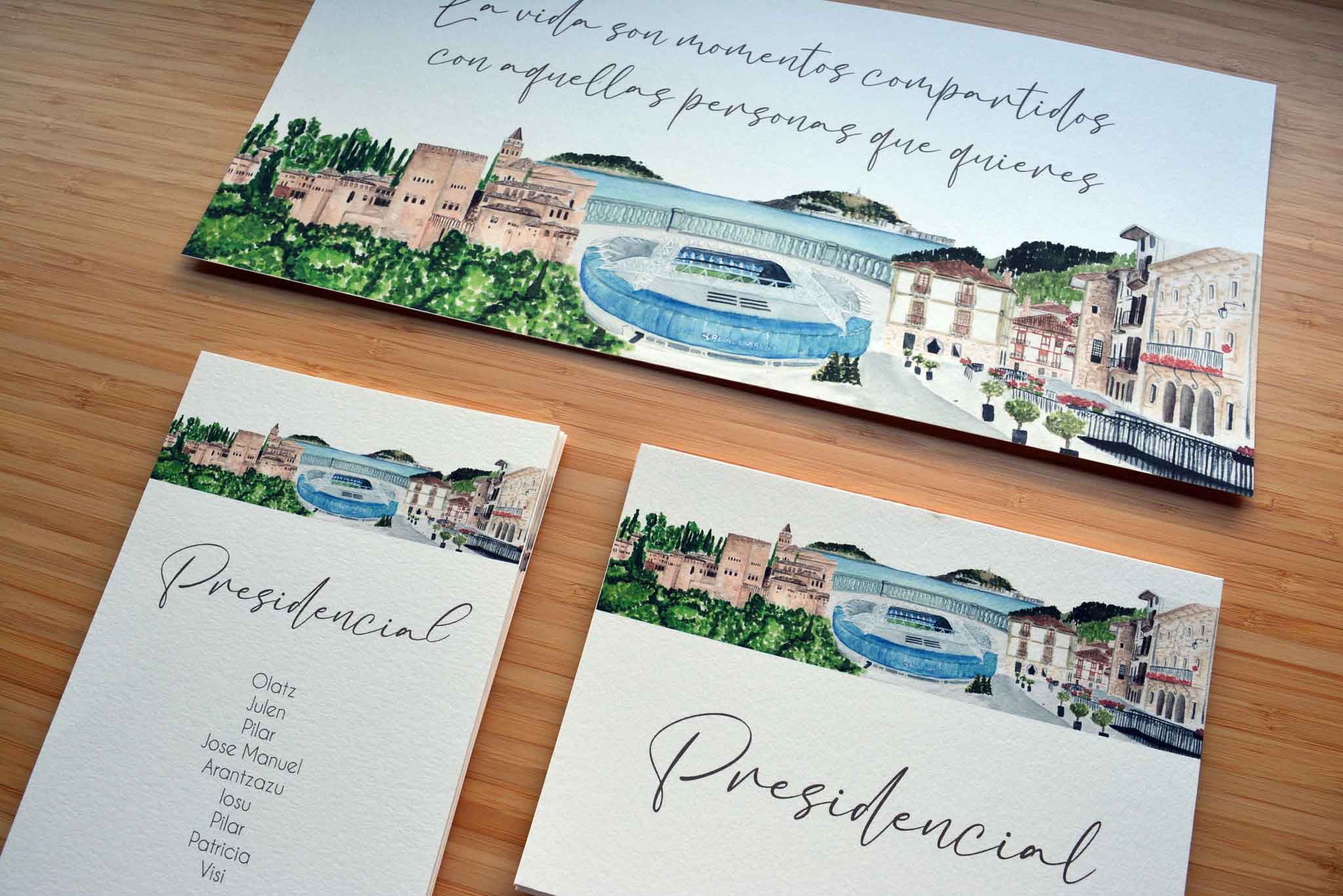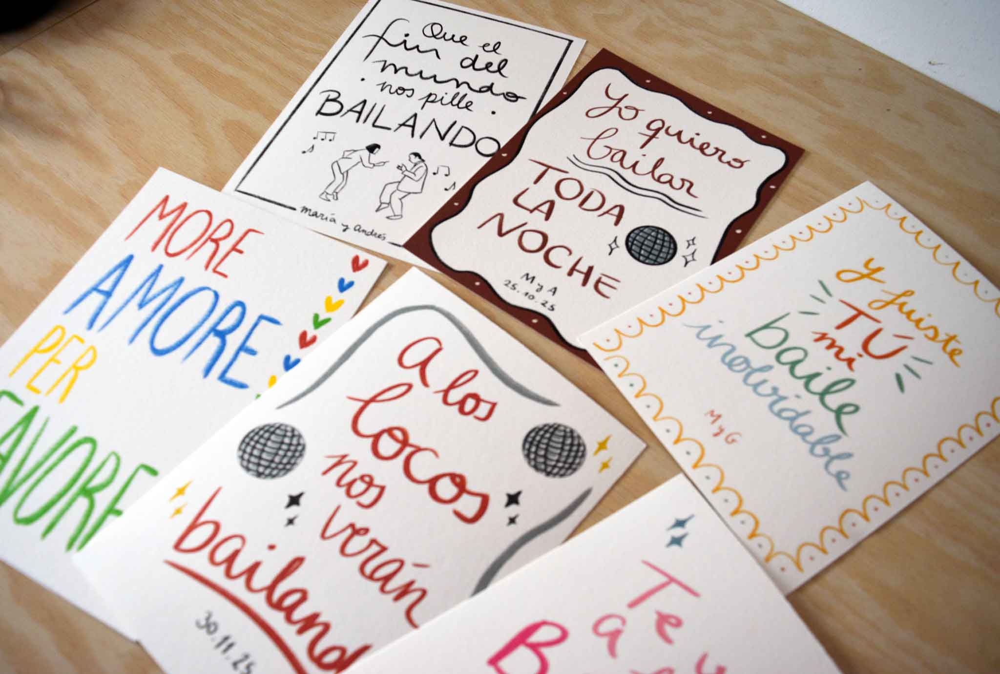 Diseños de colección: también podéis elegir uno de nuestros diseños ya hechos o de colección, listos para personalizar con vuestros nombres y colores. Una opción rápida, elegante y con la garantía de un estilo cuidado y coherente con vuestra papelería.